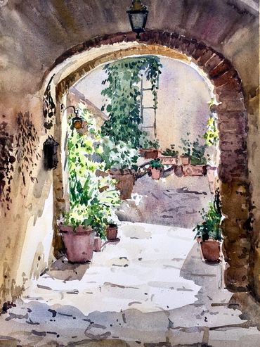 Her art studio is based in Montisi, which is part of the Comune of Montalcino in the region of Siena, She can do the watercolour class from her village or she can come to your villa or a view near you. For commissions and wedding paintings please contact me for a quote