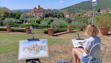 Whatever your age or ability, Elizabeth can arrange a 1/2 day or full day workshop to meet your individual needs or those of a larger group. With her extensive local knowledge, she can help you plan a personalised painting experience that takes in some of Tuscany’s most breath-taking views. She can organise accommodation for you in Montisi or nearby.